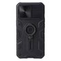 Bescherm met deze zwarte extreme privacy back case je iPhone 13 tegen stoten, krassen en vuil! De ring op de achterzijde zorgt ervoor dat je je telefoon gemakkelijk vast kunt houden én deze is als standaard te gebruiken om je telefoon neer te zetten. De schuif kun je gebruiken om je cameralenzen te beschermen als je deze niet gebruikt en zorgt voor optimale privacy! Een perfecte combinatie van een functioneel en mooi hoesje voor je iPhone 13 .